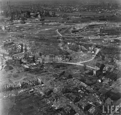 1945. március 21-én Eisenhower rádiófelhívásában a Ruhr-vidék különböző városait "halálzónává" nyilvánította, melyeket haladéktalanul el kell hagyni. Ezek között Duisburgot is említette. A rákövetkező napokban alacsonyan repülő gépek fedélzeti ágyúikkal a romokat lőtték és mindenre és mindenkire vadásztak, ami és aki az utcákon mozgott.